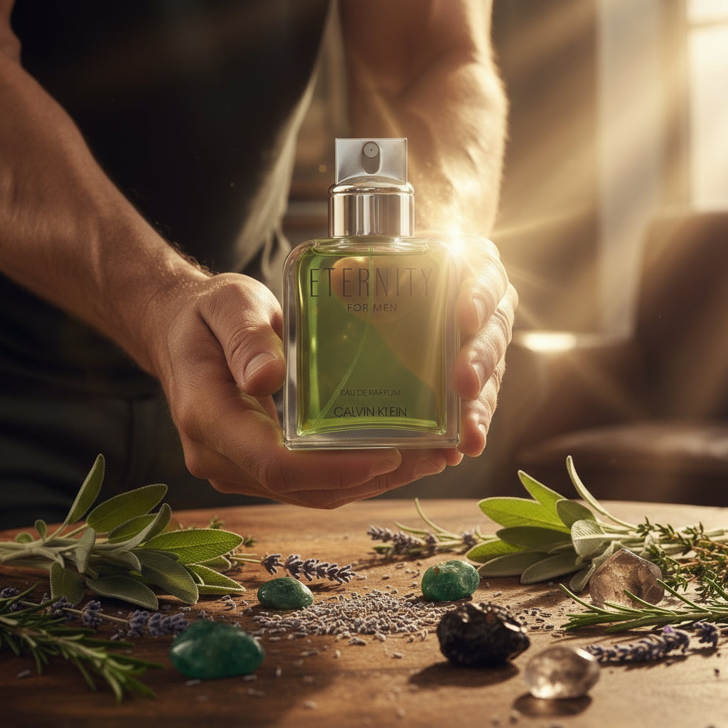 El Eternity for Men Eau de Parfum de Calvin Klein celebra la masculinidad moderna y eterna con una sofisticada reinterpretación del aroma original. Se inicia con notas frescas de salvia, notas ozónicas y manzana, que dan paso a un corazón aromático y especiado de ciprés, lavanda, geranio y nuez moscada. La composición se asienta en una base amaderada y sensual con acordes de ante (gamuza), vetiver y ámbar gris. El resultado es un aroma robusto, refinado y elegante, ideal para el hombre contemporáneo que busca una mayor duración y presencia. El líquido se presenta en el icónico frasco de Eternity con un color verde esmeralda intenso.