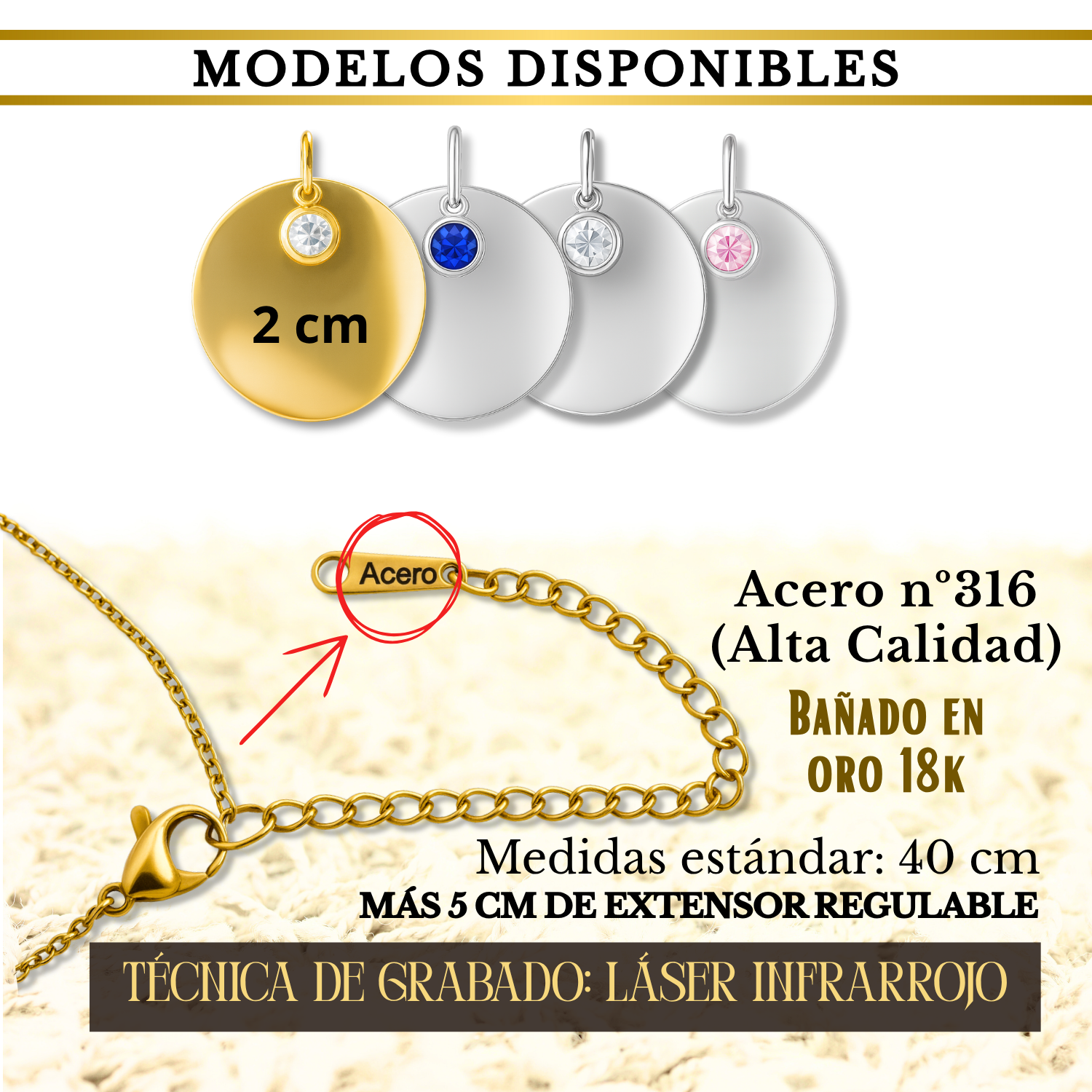 🔹 Medallas de acero 316 de alta calidad, resistente al uso diario y al paso del tiempo.