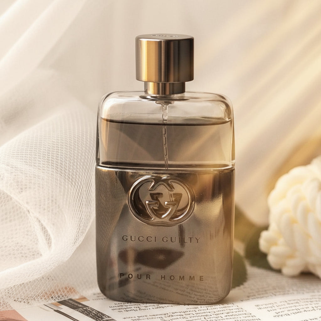 Gucci Guilty Pour Homme Eau de Toilette es una fragancia masculina atemporal que combina la frescura cítrica del limón de Amalfi con la lavanda francesa para abrir camino, evoluciona hacia un corazón floral de azahar y neroli, y se asienta en una base cálida de cedro y pachulí.