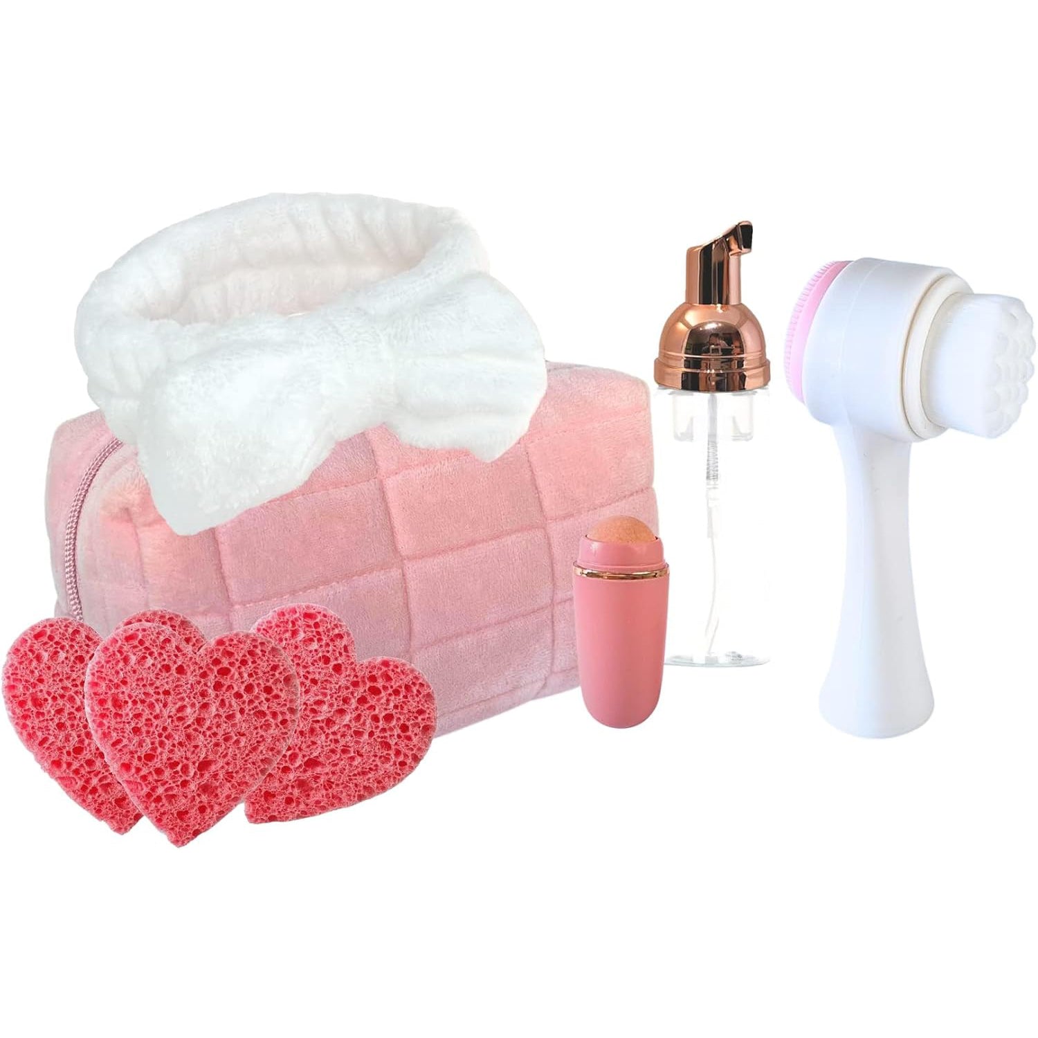 Descubre el regalo perfecto para mujer con este set de cuidado facial. Incluye un cepillo manual para limpieza facial, un dispensador de crema, 3 esponjas reutilizables en forma de corazón, una diadema para maquillaje, un neceser rosa y un roll-on quita grasa. Ideal para exfoliar, mejorar la circulación y eliminar células muertas, este set ofrece una rutina de skincare completa. Las esponjas, suaves y reutilizables, se transforman al mojarse, y el roll-on controla la producción de sebo para mantener la piel fresca y sin brillos. Un regalo original y elegante para quien busca una piel radiante y cuidada.