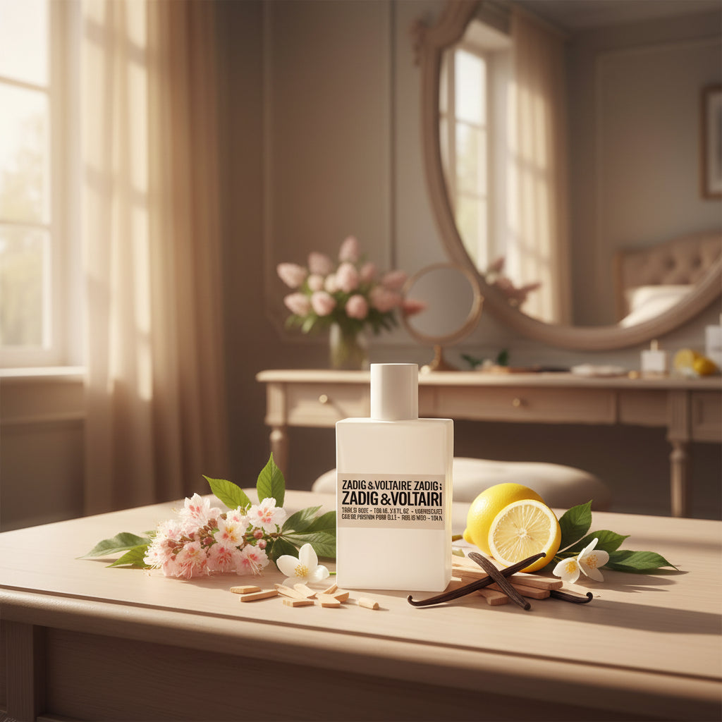 El Eau de Parfum This is Her! de Zadig & Voltaire es una fragancia femenina de la familia oriental amaderada que encapsula el espíritu rock'n'roll de la marca. Su aroma es profundamente cremoso y adictivo, centrado en un corazón gourmand de castaña y vainilla, aportando una dulzura envolvente. Esta riqueza comestible se equilibra con notas florales de jazmín en la salida y una base sensual de sándalo y madera de cachemira, que le confieren su característica calidez y una estela duradera y rebelde. Es un perfume dulce, moderno y audaz, ideal para quienes buscan una fragancia con carácter.